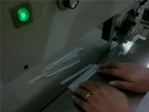 4,上刀片高度調(diào)整:根據(jù)所要分的PCB板的厚度不同對(duì)其上刀高度進(jìn)行調(diào)節(jié),直到調(diào)整至最佳結(jié)果,在下刀上放置一厚度為0.1MM的紙張,撥動(dòng)上刀座滑動(dòng)時(shí),紙上有清晰平直均勻的劃痕為最佳;電路板沿導(dǎo)板送入機(jī)器內(nèi),能否干凈利落的被刀片分開,取決于上刀片和下刀片的間距是否合適來(lái)決定的,所以分板前要將刀片高度調(diào)好,試切完畢后沒(méi)有問(wèn)題后,擰緊調(diào)整旋鈕固定螺絲.用雙手將待分PCB的V-CUT槽卡在上刀行程之內(nèi)的下刀刀刃上(不可歪斜),用腳踩腳踏開關(guān)進(jìn)行分板作業(yè)。