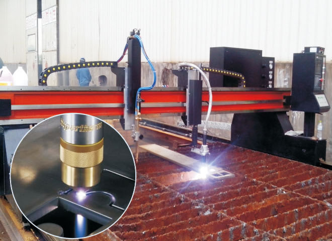 等離子切割工作原理是加熱到高溫被高度電離的氣體,然后將電弧功率轉移刀工件上,是工件融化且吹走,達成切割效果。等離子切割領域寬,可以切割所有的金屬板材,切割速度快,精度可以達10m/min。