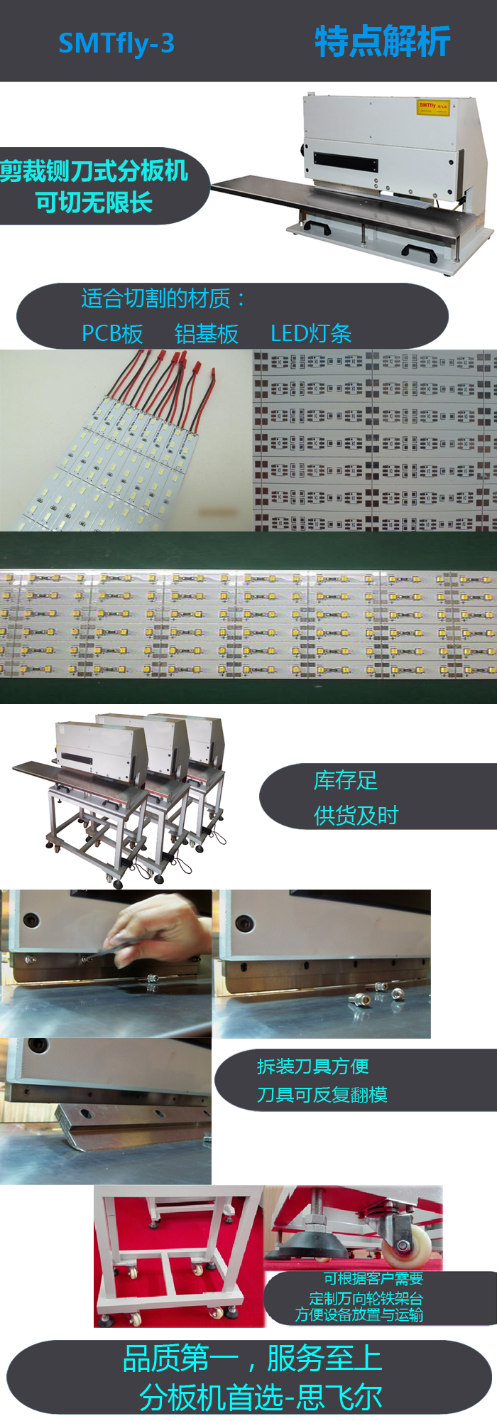 ●適用於各種PCB板,鋁基板,氣動式設計,無剪切應力,特別適用于分割精密SMD薄板,鋁基板等.